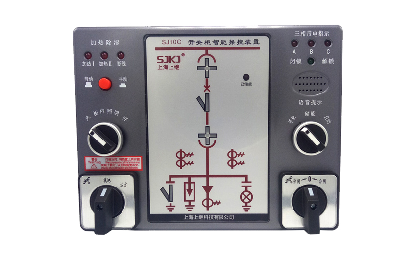 SJ10C開關柜智能操控裝置功能強大,用于3-35kV戶內開關柜,適用于中置柜、手車柜、固定柜、環網柜等多種開關柜,可取代傳統開關柜的一次回路模擬、帶電顯示器、自動加熱除濕控制器、斷路器分合閘按鈕等元件,具備了斷路器分合閘狀態指示、儲能指示、接地開關指示、手車位置指示、智能語言防誤提示、高壓帶電顯示、溫濕度數字顯示、柜內照明及RS485通訊接口等多項功能。